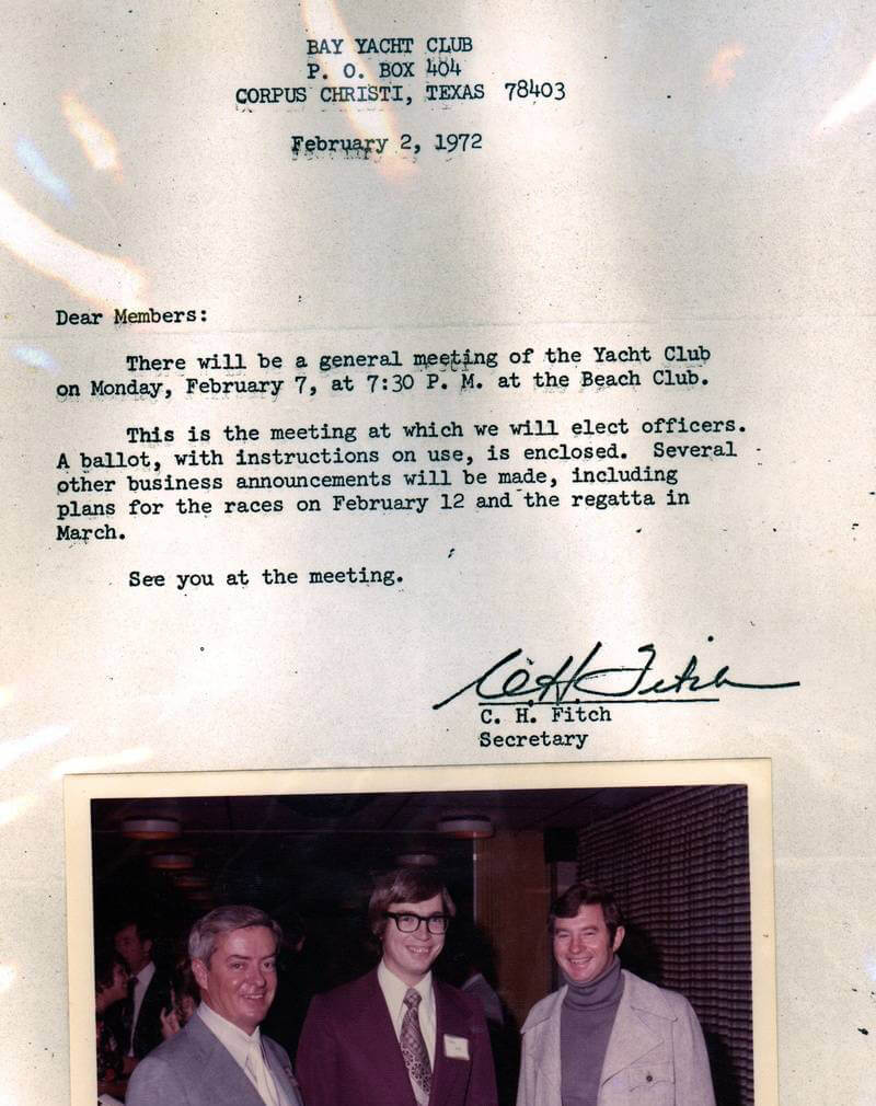 The Bay Yacht Club will forever be indebted to the honor and service these two individuals gave to the club. The Memorial Plaque hangs on the south wall of the club by the door.
