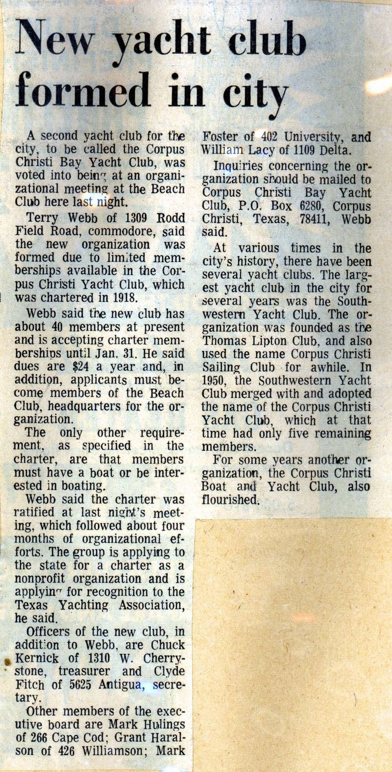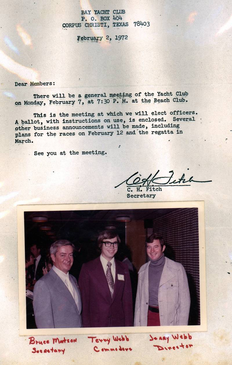 We lost a loyal BYC member last month, with the passing of Terry Harkrider. I was touched by the fact that his obituary listed his affiliation in the Bay Yacht Club among his many interests. Terry really did love the Bay Yacht Club and was active in it up until the time his health would permit no more.