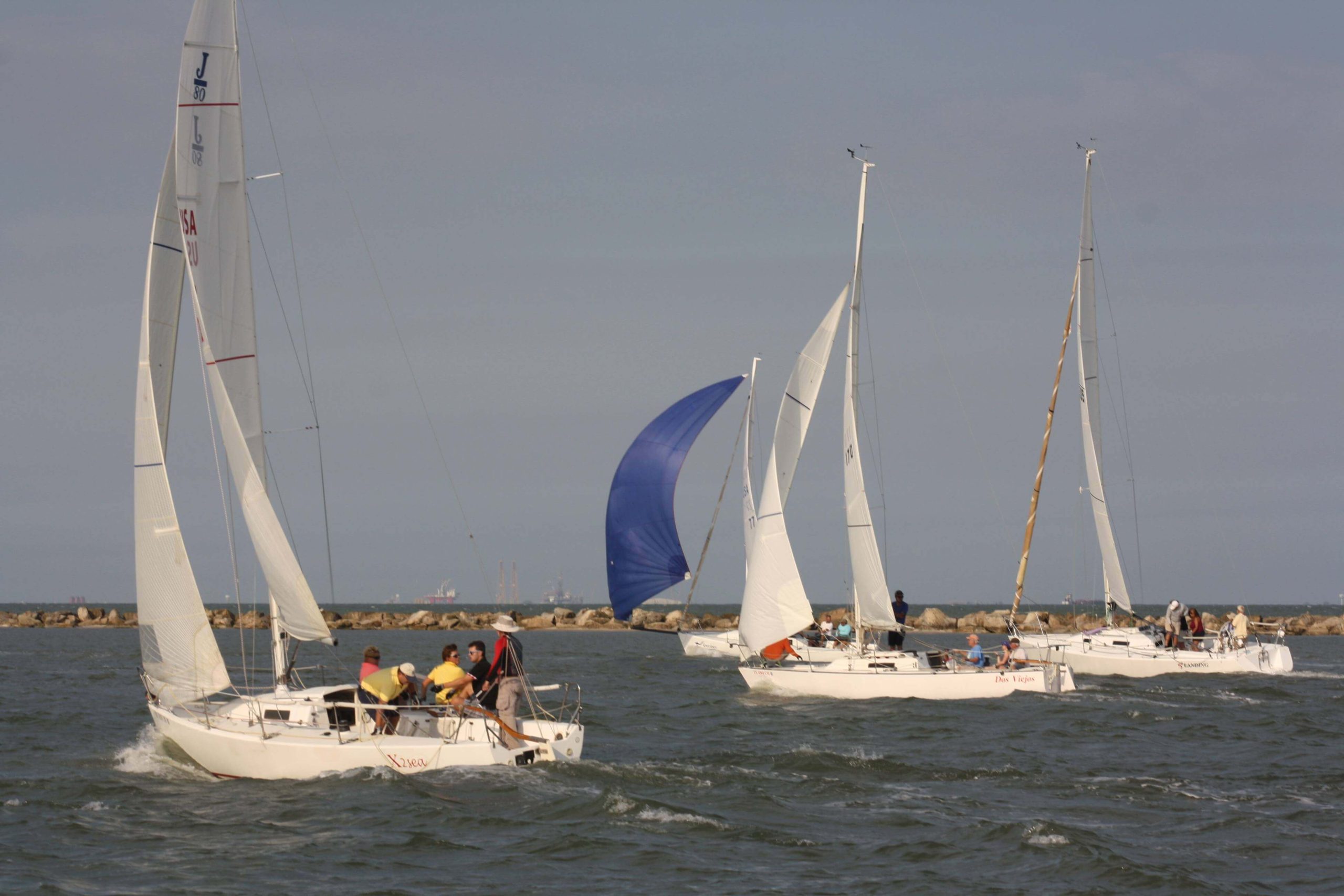 Depending on participation, boats are typically grouped into an All-Sails Fleet that is allowed to use spinnakers and a Non-Spinnaker Fleet that is restricted to a 150% jib as the boat's largest headsail. For casual races, we often include a Cruising Class for skippers who do not wish to remove the cloth cockpit enclosure, the dinghy, the propane grill or the outboard motor from the stern rail. Our objective is always a day of competitive fun on beautiful Corpus Christi Bay!